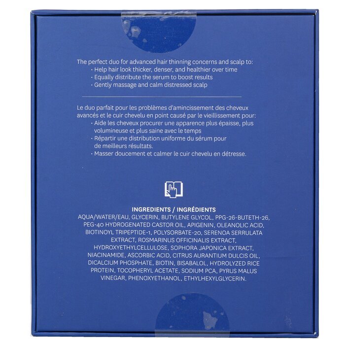 - 2-piece set: 1x Hair Densifying Scalp Serum (60 ml / 2 oz) and 1x Gentle Scalp Massaging Serum Applicator.