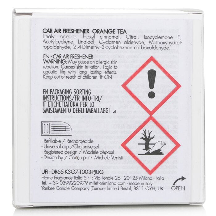 A stylish car air freshener that combines invigorating orange & soothing tea notes.